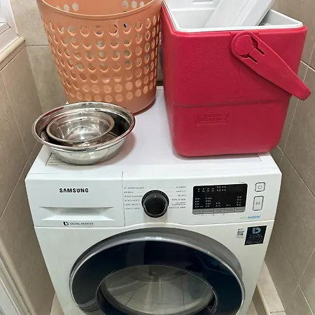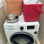 Het appartement biedt een balkon en een terras die zijn ingericht met een bank, samen met moderne voorzieningen zoals een flatscreen TV met satellietzenders. Deze accommodatie is uitgerust met een badkamer met een haardroger. Er is ook een apart toilet en een douche.